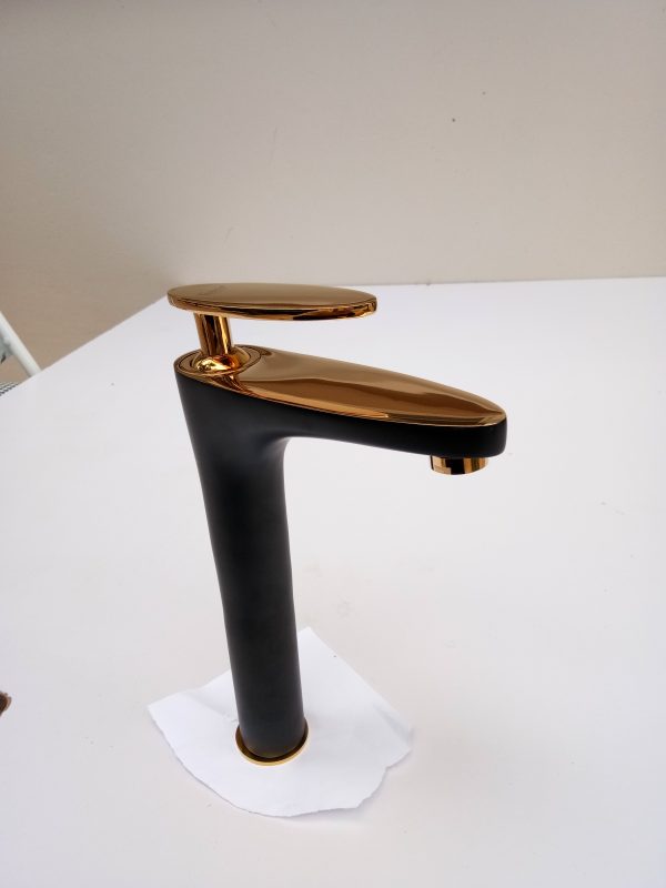 VÒI CHẬU RỬA MẶT LAVABO CONG THÂN ĐEN VÀNG.